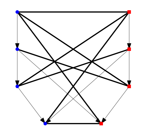 The digraph shown is a smallest (8 vertex) Digraph Placement game with a particularly hard to construct value. The value is highly symmetric, and this digraph was found by exploiting that symmetry.